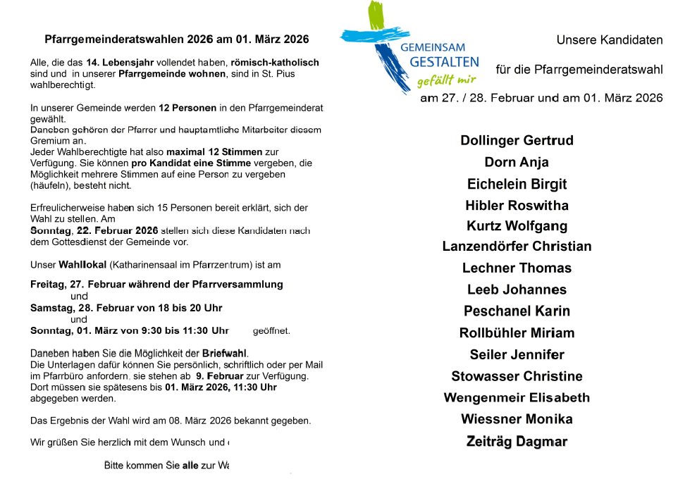 DAS PFARRBÜRO HAT IN DEN FASCHINGSFERIEN NUR AM